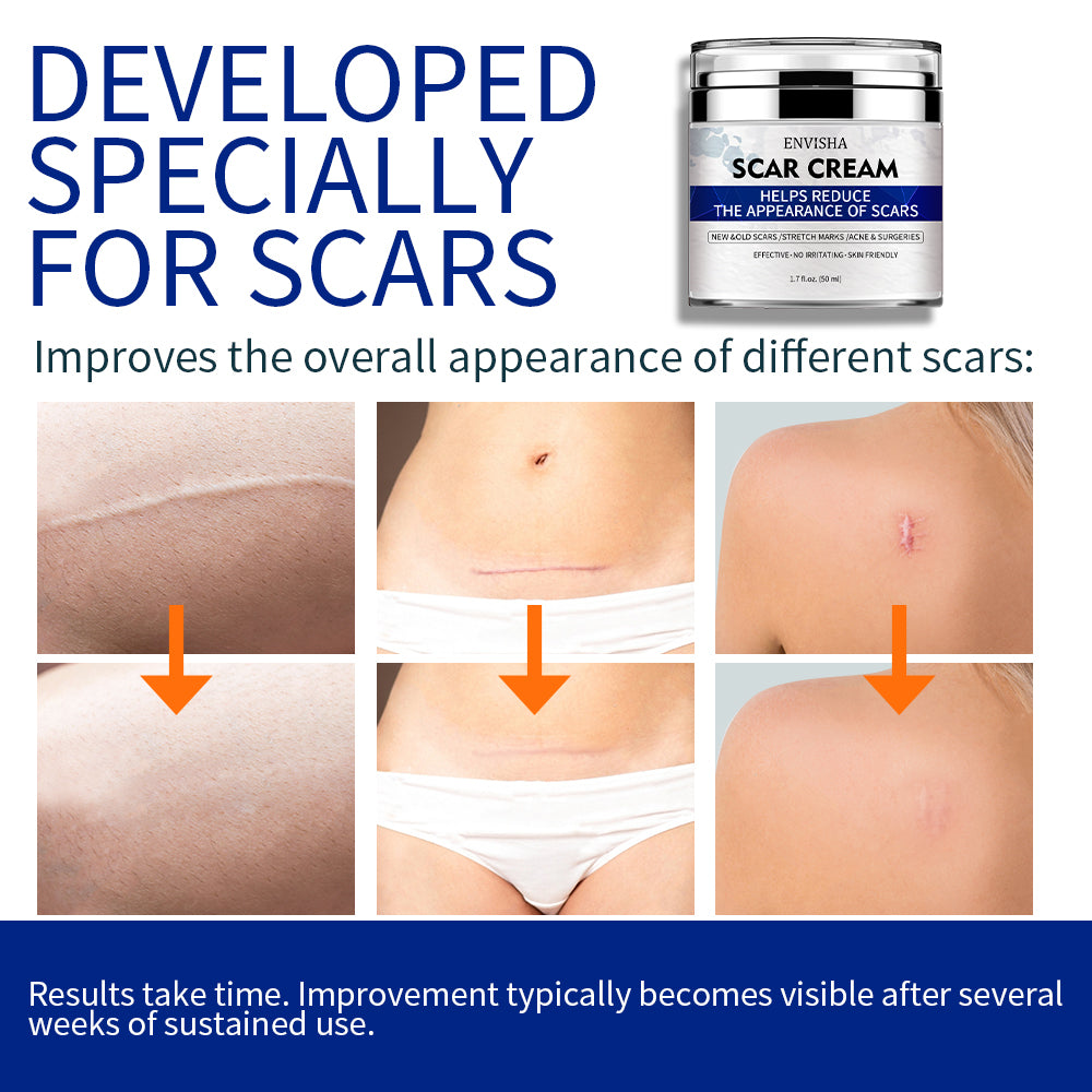 Dites adieu aux cicatrices, vergetures et marques indésirables avec la crème anti-cicatrice Envisha. Formulée à base d’ingrédients doux et efficaces, elle aide à réduire visiblement l’apparence des cicatrices anciennes et récentes, qu’elles soient dues à une chirurgie, une césarienne, de l’acné ou des vergetures.